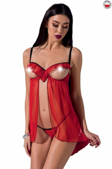 Прозорий пеньюар з відкритими грудьми Passion Exclusive CHERRY CHEMISE, Червоний, L, XL, L/XL