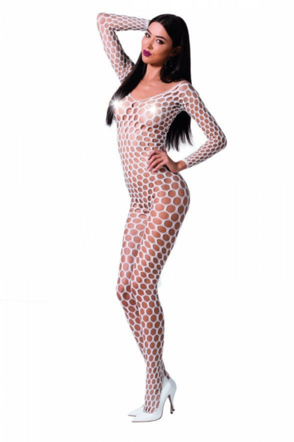 Бодістокінг комбінезон із великою сіткою Passion BS077, Білий, S, M, L, S/M/L